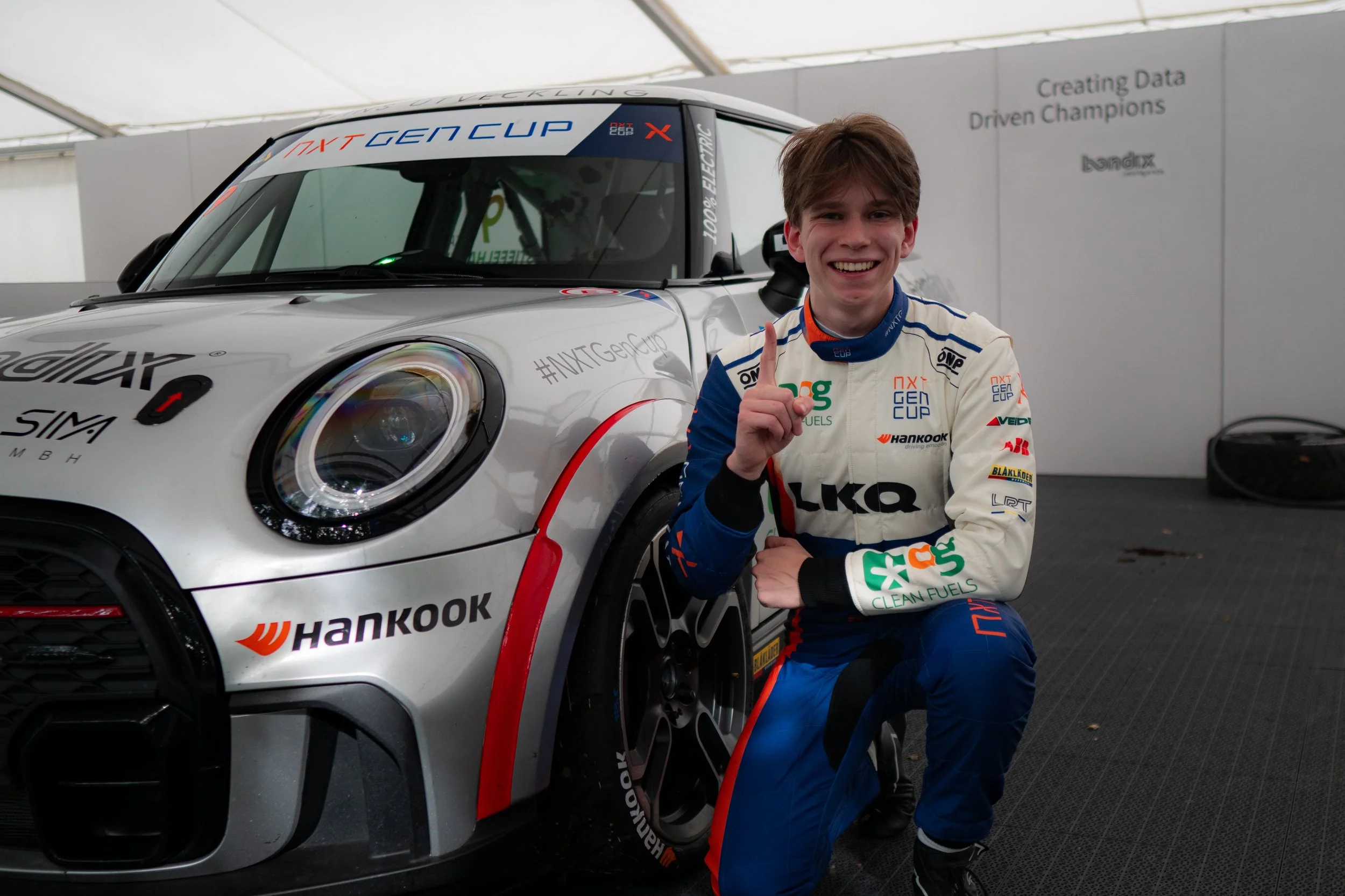 Fellow Dutchman Calvin de Groot (20) finished second in qualifying, missing pole position by just 0.178 seconds in his 100% electric LRT NXT1 race car.