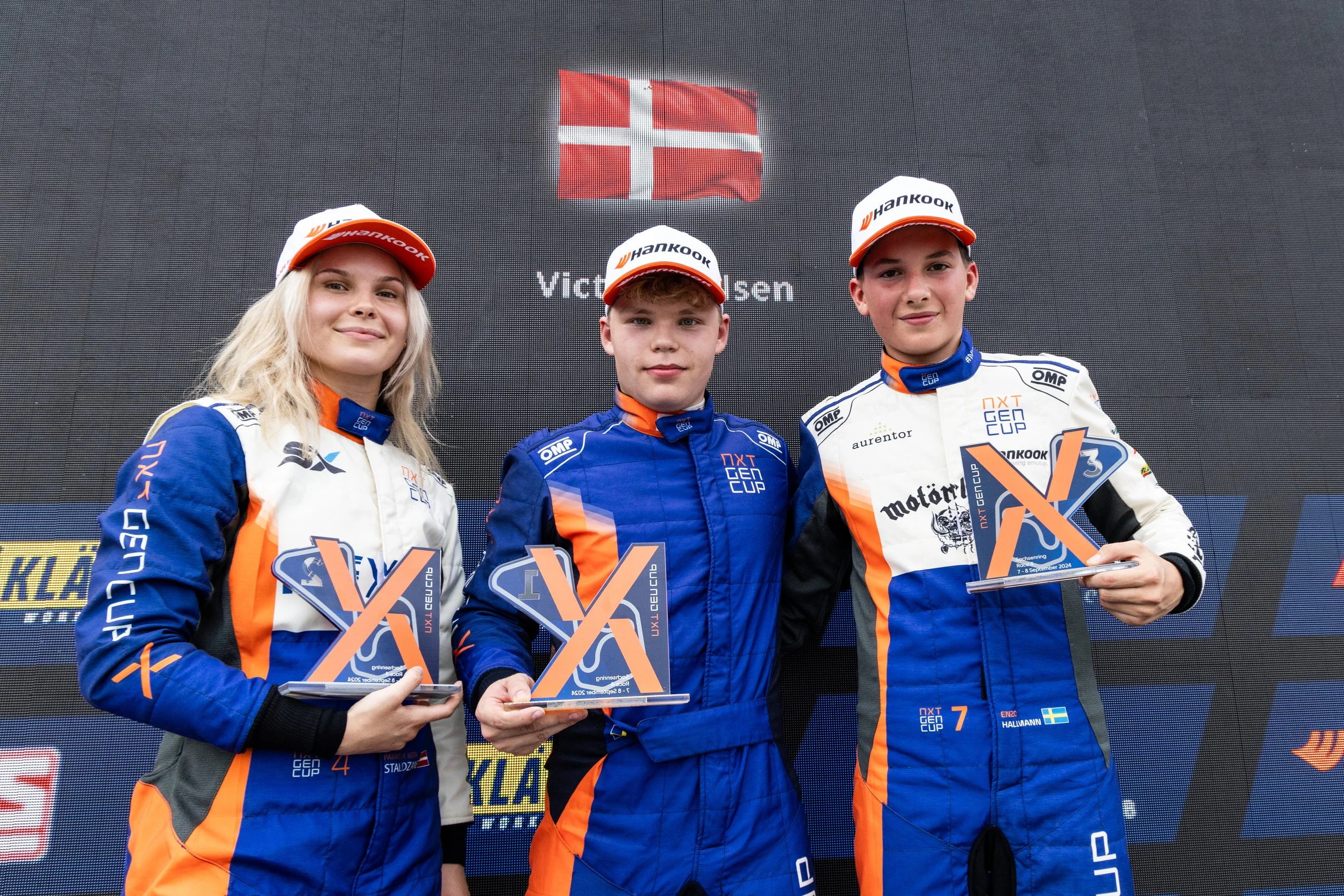Latvian racer Patricija Stalidzane made racing history by finishing second in the final race behind Viktor Nielsen, becoming the first-ever female driver to stand on the NXT Gen Cup podium. Earlier in the day, she secured second place in qualifying, just 0.005 seconds behind championship leader Calvin de Groot.